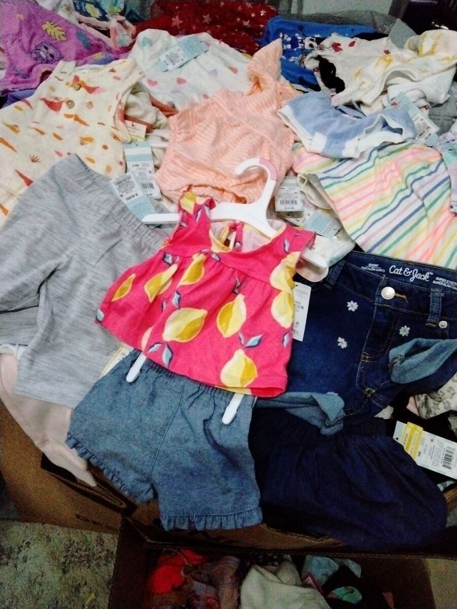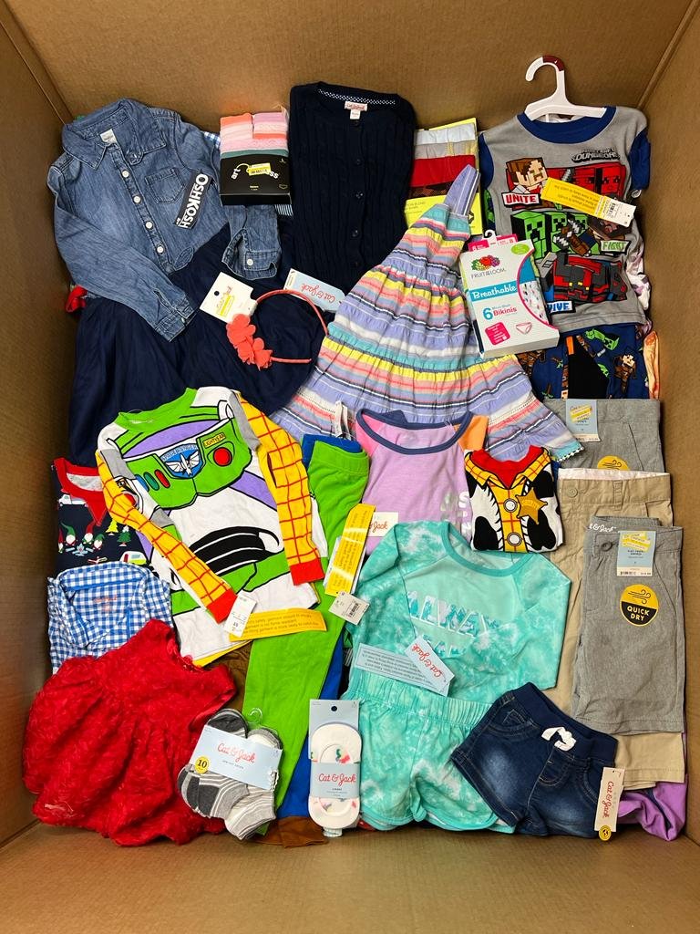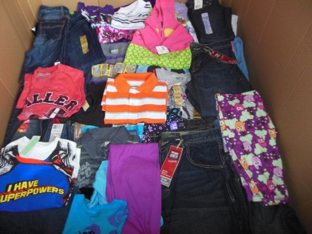 You will receive one 4x4x4 gaylord of clothing. Pallet will contain a mixture of baby, mens, women’s, boys and girls clothing. These are also heavy on women’s and kids clothes and should contain mixed items like jeans, shorts, jackets, shirts of all types, bras, leggings, mens boxers and undershirts etc.. these came off of a major retailer Liquidation truckload and all items are new, unused and about 95% will still have tags.